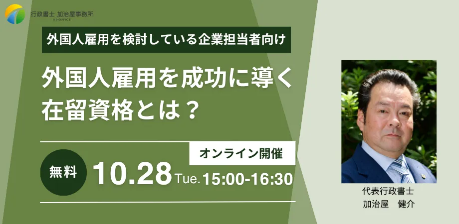 本セミナーでは、行政書士が実務の視点から「外国人雇用の基本」「在留資格のポイント」「定着支援の工夫」など、企業が押さえておくべき重要事項をわかりやすく解説します。
